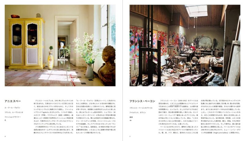芸術運動を先導したウィリアム・モリスやリートフェルトの自邸における、実験的な試み。イヴ・サンローランがモロッコに建てたモザイクタイルの邸宅に満ち溢れる、美への情熱。物が散乱し絵の具が飛び散ったフランシス・ベーコンのカオティックなアトリエは、彼の人生そのものの反映です。また、ルネ・マグリッドにとってリビングのブルーの壁は創作のヒントになりました。