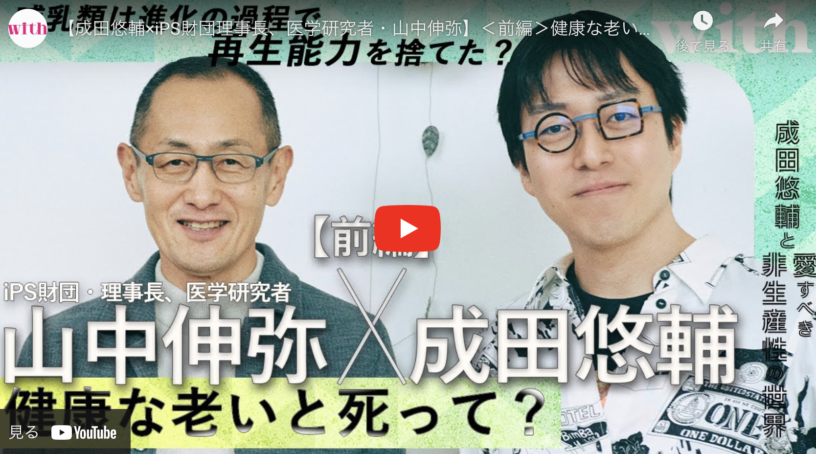 成田祐輔さんと山中伸弥さんの対談。前半が面白かった。後半は国立大学の研究費や建物への資金の捻出が難しいという話や、次の世代にどうバトンを渡していくか?という具体的な壁の話が多かったが、前半は「健康の定義は何か?」とかips細胞の話とか、植物と細胞の機能的なものが、人間に応用可能かどうか?とか、細胞を巻き戻せるのかどうか?とか、こんな感じのこと考えて研究してるんだな的なことが少し見えただけでも面白かった。