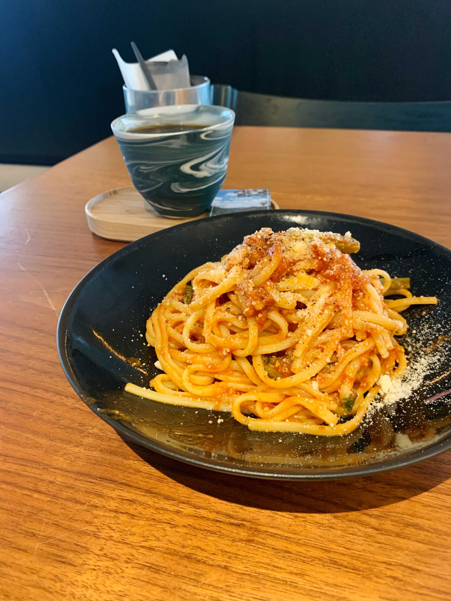 DDD hotel。建築家二俣公一(CASE REAL)さんが手がける空間はとても洗礼されていて、尚且つ居心地がよい。馬喰町の近くをたまたま歩いていたので、ランチによってみた。メニューは食事はサンドイッチとパスタ。僕はアスパラのトマトパスタを頼んだ。麺はもちもちの、アンチョビのような味がして、普通に美味しかった。コーヒーはケニア。コーヒー専門っぽい人がいた。昼にゆっくりご飯食べて、そのまま作業するのにも適している。実際仕事をしている人は結構いた。