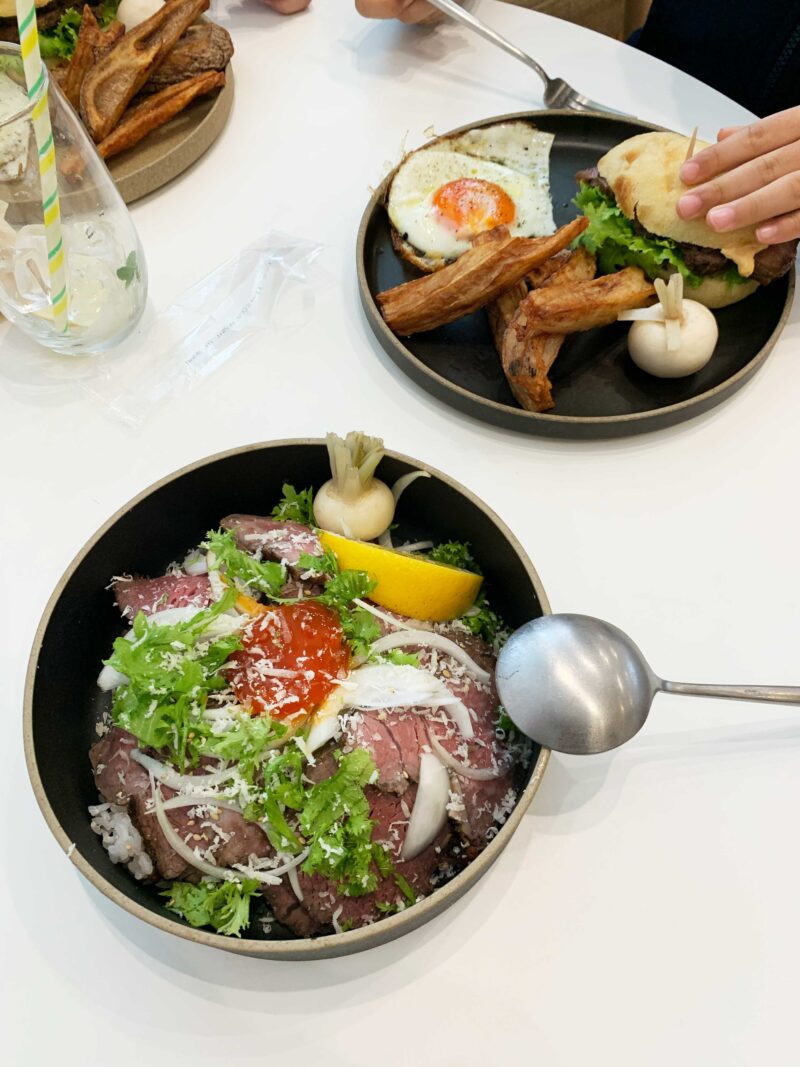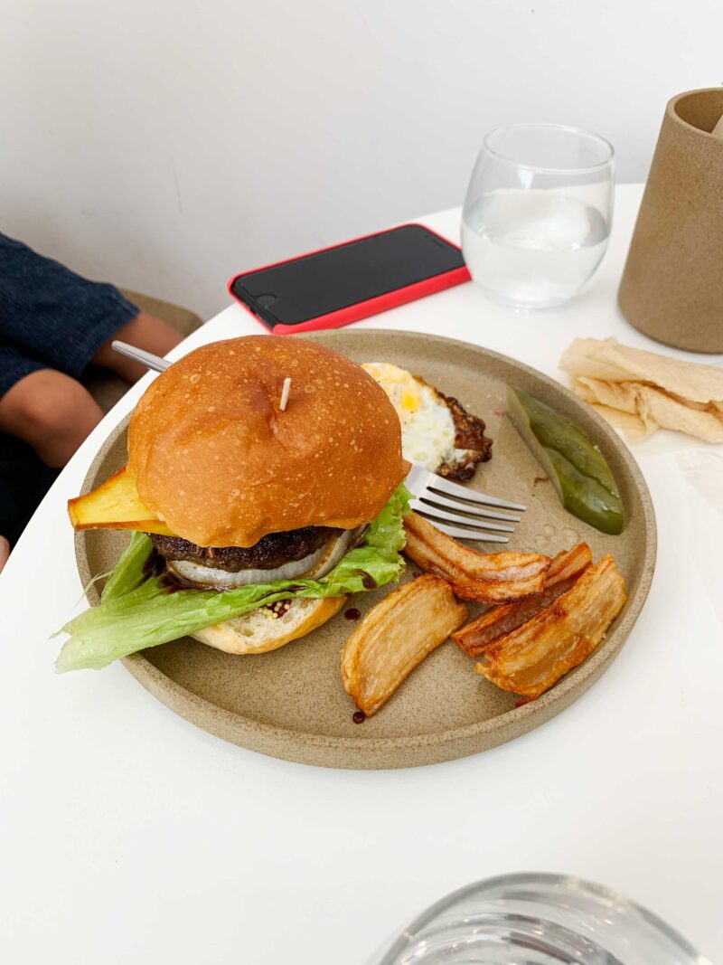 牧場オリジナルのブランド牛である白富牛、黒毛和牛と乳用種のミックス種であるしろいし牛、佐賀県産黒毛和牛を使用したハンバーガーやローストビーフを食べることができる。肉も販売している。とても美味しい。そして、特徴はポテトがレンコンフライだということ。この佐賀県白石町はレンコンの産地で、僕はこの町から車で30分くらいの土地で生まれ育って、レンコン畑の中を駅伝(陸上)の大会で走っていた。このレンコンはレンコンに対して繊維に垂直でなく、水平方向(レンコンを縦に)切って、それを揚げたものである。食べた時にレンコンの繊維が切れて、サクサクして、のびーる。知らない人にとっては新食感だと思う。建築の内装なども素晴らしい。
