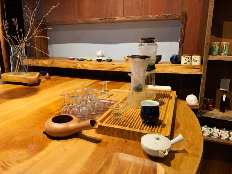 茶寮千代乃園は、福岡県八女市の街中からさらに山手の方に車で30分ほどいった場所にある。川のすぐそばにあるお店は、そこに行くだけで、少し安らぐ。氷だしのゆっくりと抽出したお茶や、煎茶から和紅茶まで、原島一家たちがつくったお茶を、娘さんの原島春花さんがこの場所で、美味しく楽しんでもらうように工夫をしている。ゆったりと流れる時間が何よりもの至福の時間です。デザインは福岡のデザイナー三迫太郎さん