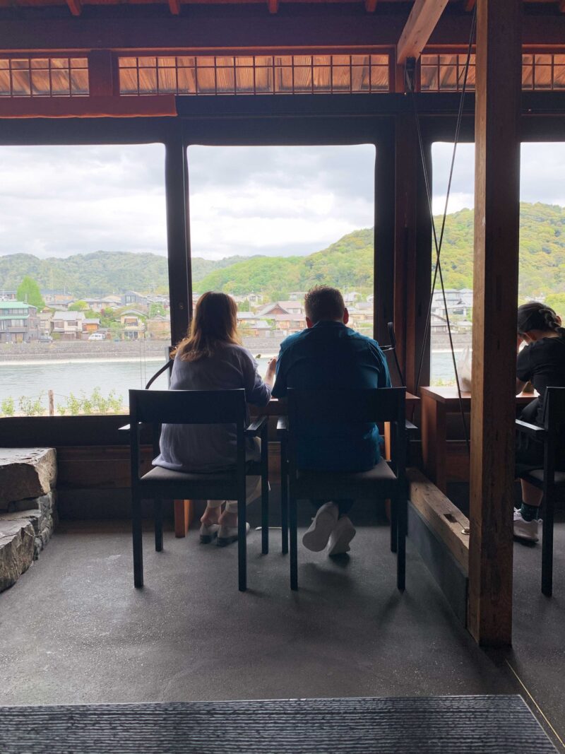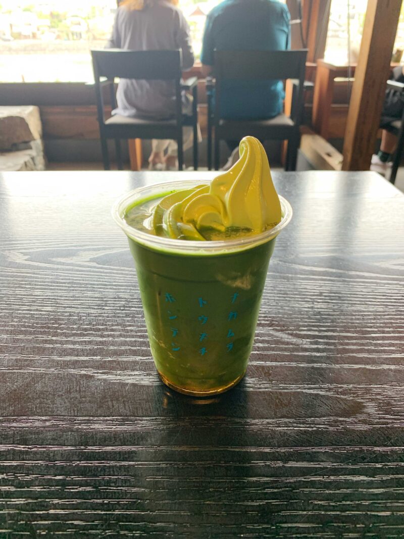 1854年創業の老舗のお茶屋。僕が飲んだ(食べた?)のは抹茶の中に寒天入ってて、上にソフトクリームのってるやつ。抹茶感がすごかった。全然甘くないと思ったら、そこに少しシロップみたいなのたまってた。混ぜようね。このお茶屋は設計とてもよかって、少し調べたらアーバンデザインセンター宇治という組織が設計思想は固め、ムトカ建築事務所が設計、ファブリックはオンデルデリンデというグループがやっているみたいだ。商店建築の雑誌にも載ってたりした。宇治川を望みながらお茶飲んでゆっくりできる。