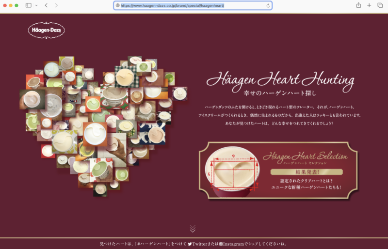ハーゲンダッツの窪みがハートに見えませんか?という本当に小さな話題があがっていた。それを公式の企業が、幸せのハーゲンハート探しという形で反応してコミュニケーションとったらどうなるか?と。それをやったら、めちゃくちゃ広まった。