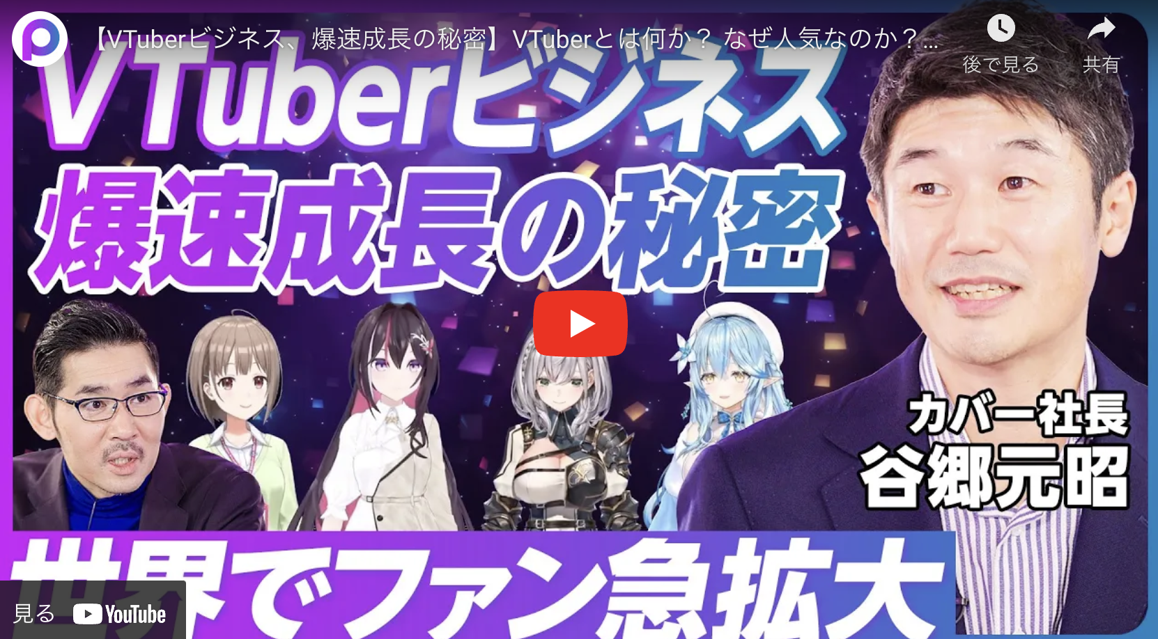 - 【VTuberビジネス、爆速成長の秘密】VTuberとは何か? なぜ人気なのか?/アニメ市場が倍増/海外でもファンが急拡大/ライバルは韓国/YouTubeの重要性/利益率が高い理由(前編)