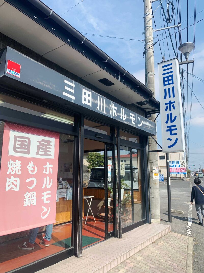 佐賀県神崎郡吉野ヶ里町にある三田川ホルモン。国産のホルモンのみを取り揃える肉屋だ。ホルモンだけとは、なかなか絞り込んだな!!という感じ。もつ鍋用にホルモンと丸腸(ホルモンの開いてないやつ)、もつ鍋用のアソートのホルモン、ダルムを購入。満足。