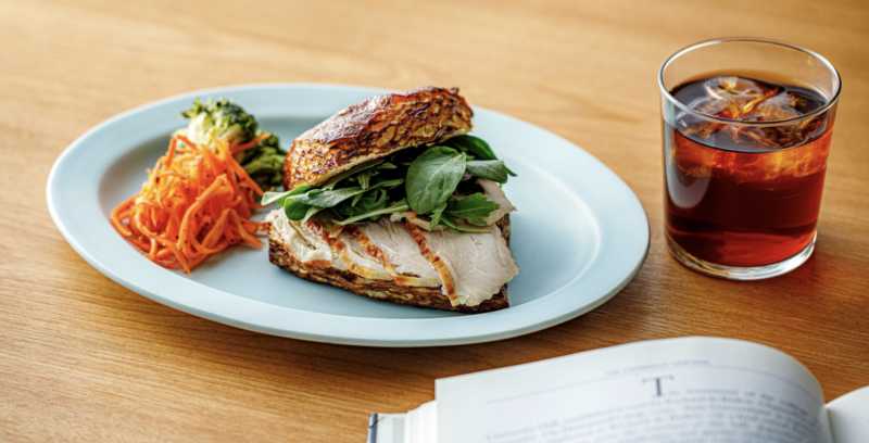 本との出会いだけでなく、食事と会話を愉しめる喫茶室を二階奥に配置。本を傍らに語らったり、ときには打ち合わせをしたり。小腹を満たしながら、誰かと会話するもよし。自由にご利用ください。コンセプト
