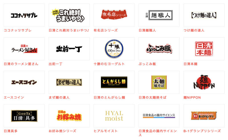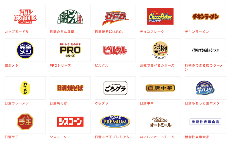 お馴染みのカップヌードル、チキンラーメン、どんべいから、最近は宇宙食までやっている。