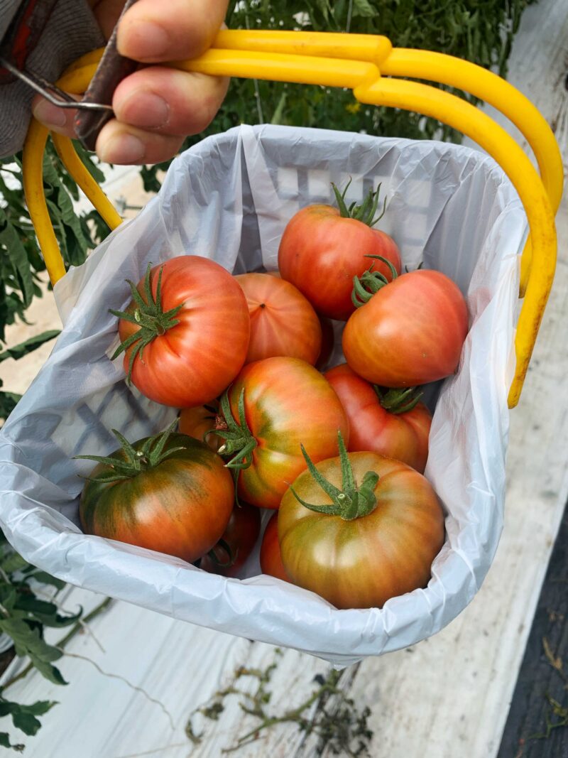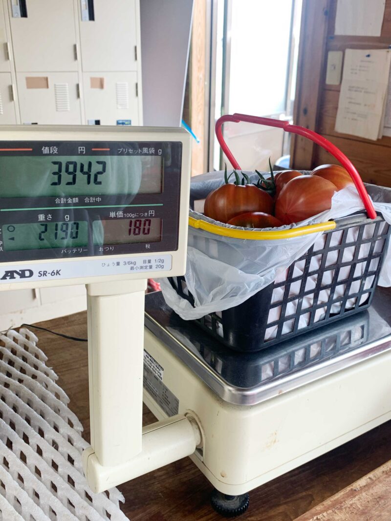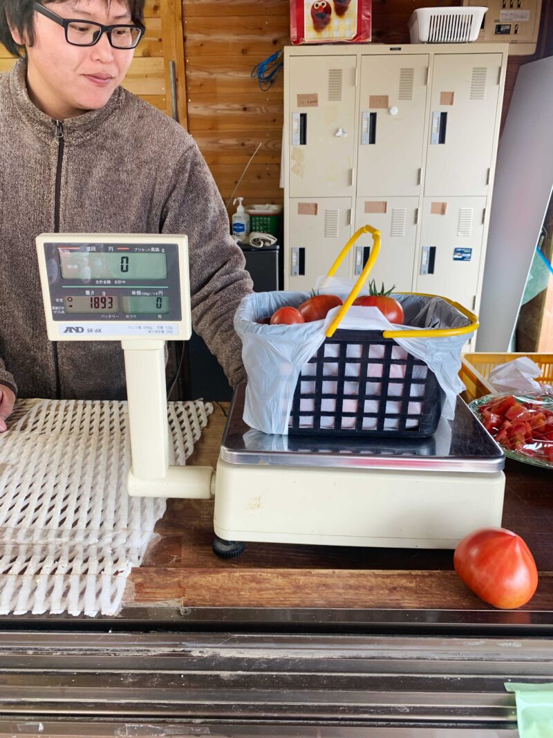 かごにどんどんトマトを入れていくと、恐ろしい金額になるよ。笑